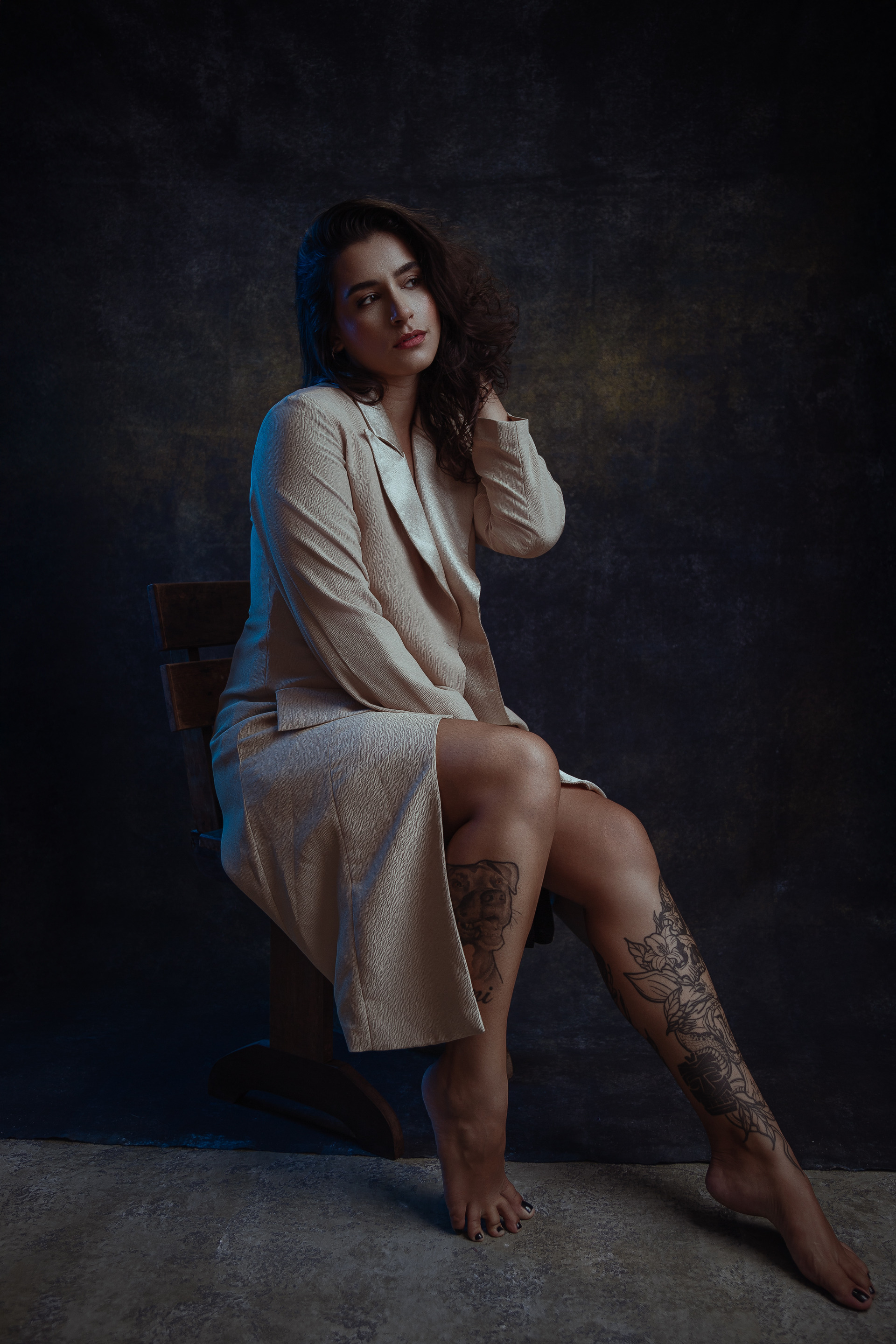 A luz, os tecidos, as poses e os tons são escolhidos com cuidado para criar uma narrativa visual única.